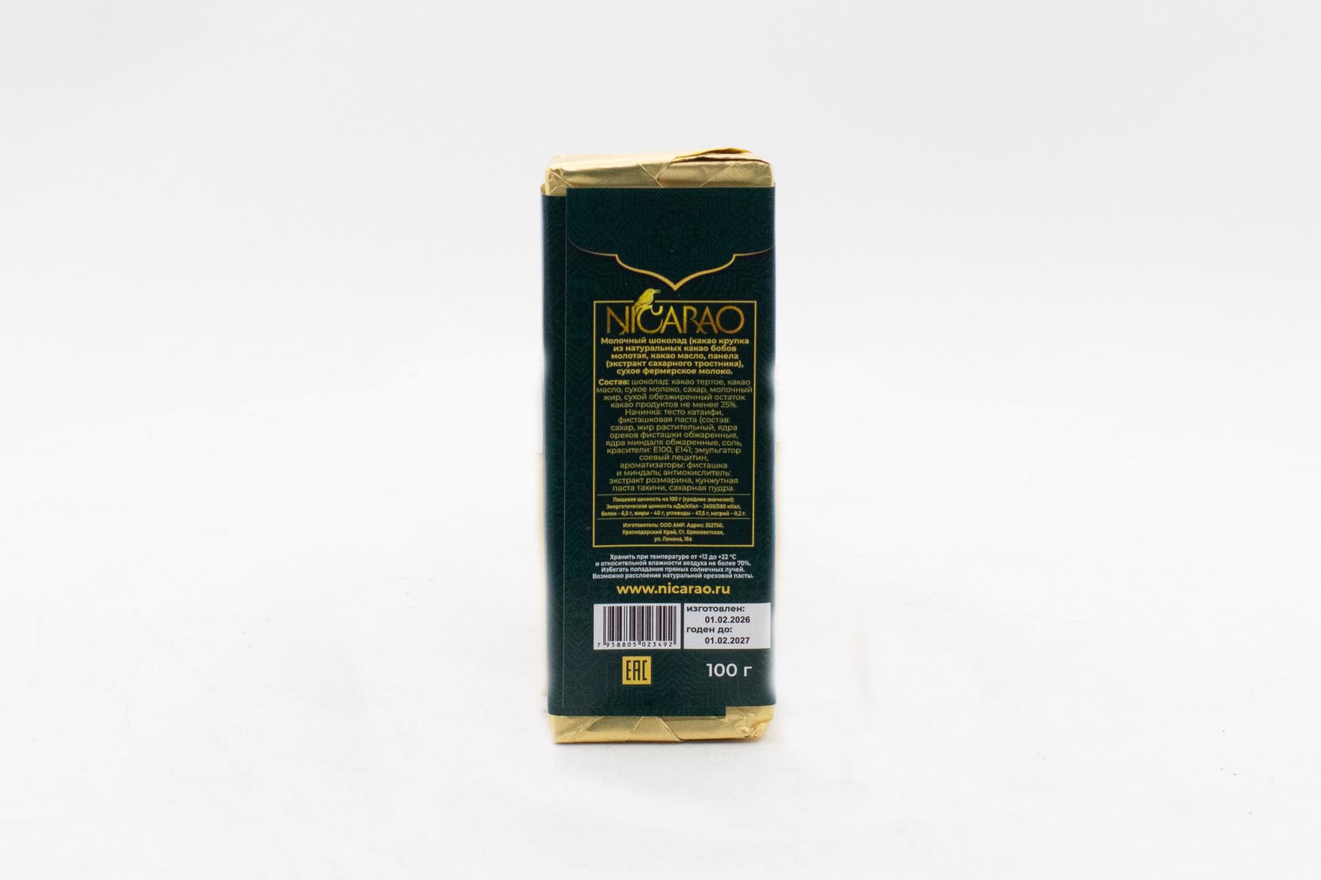 Дубайский шоколад молочный NICARAO (Россия) 100г0,00 руб. за штуку (в упак. 16 шт.) |